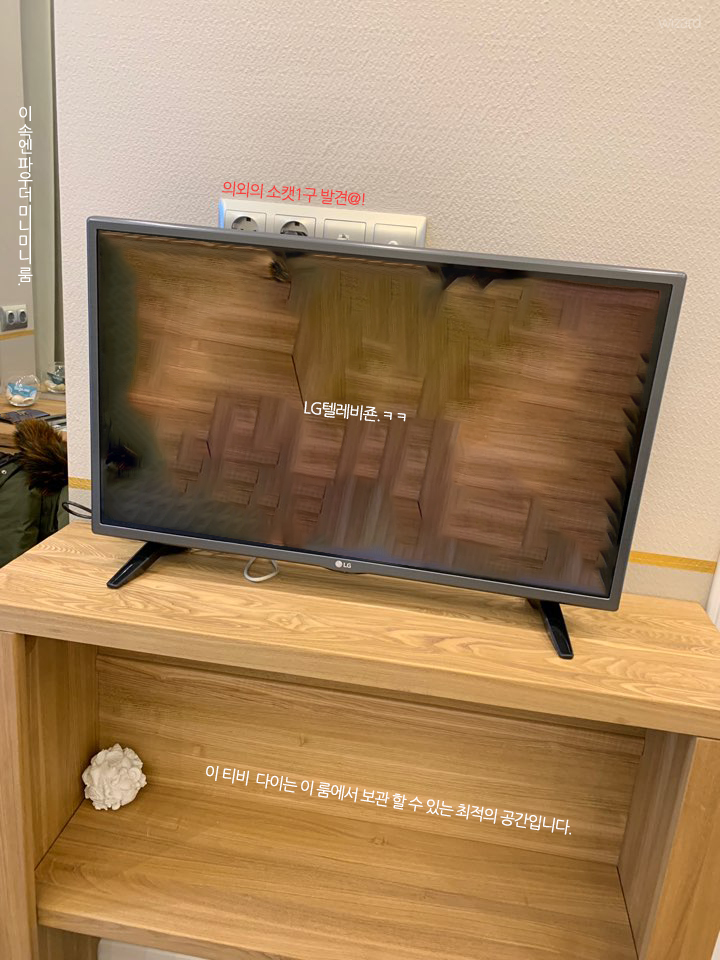 티브이 왼쪽에 쏙 들어가 있는 미니 파우더 공간.